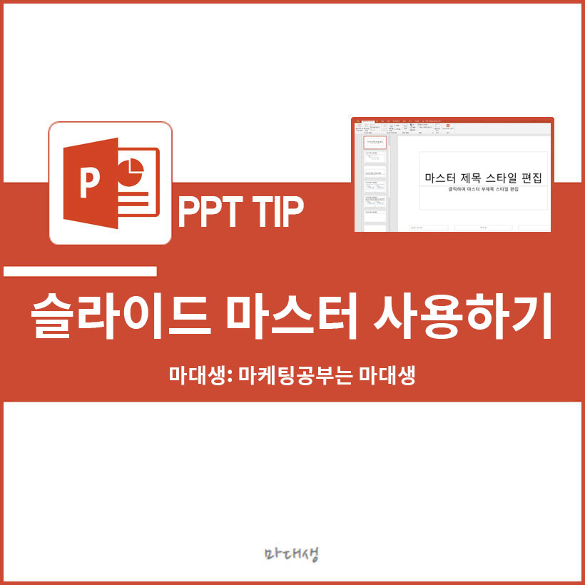 PPT를 만들다보면 동일한 디자인의 배경을 사용하는 일이 많습니다. 이 때 이전 슬라이드를 복사하여 사용하는 경우, 이미 입력된 내용들을 삭제하거나 수정해야 하기 때문에 여간 귀찮지 않을 수 없습니다. 또한, 각 소제목이 입력되는 간지 등 가끔 사용하는 디자인을 찾아서 따로 삽입해주어야 하는데, 슬라이드 마스터를 사용하면 일종의 템플릿을 제작하여 필요에 따라 원하는 레이아웃, 디자인의 슬라이드를 불러와 사용할 수 있습니다.